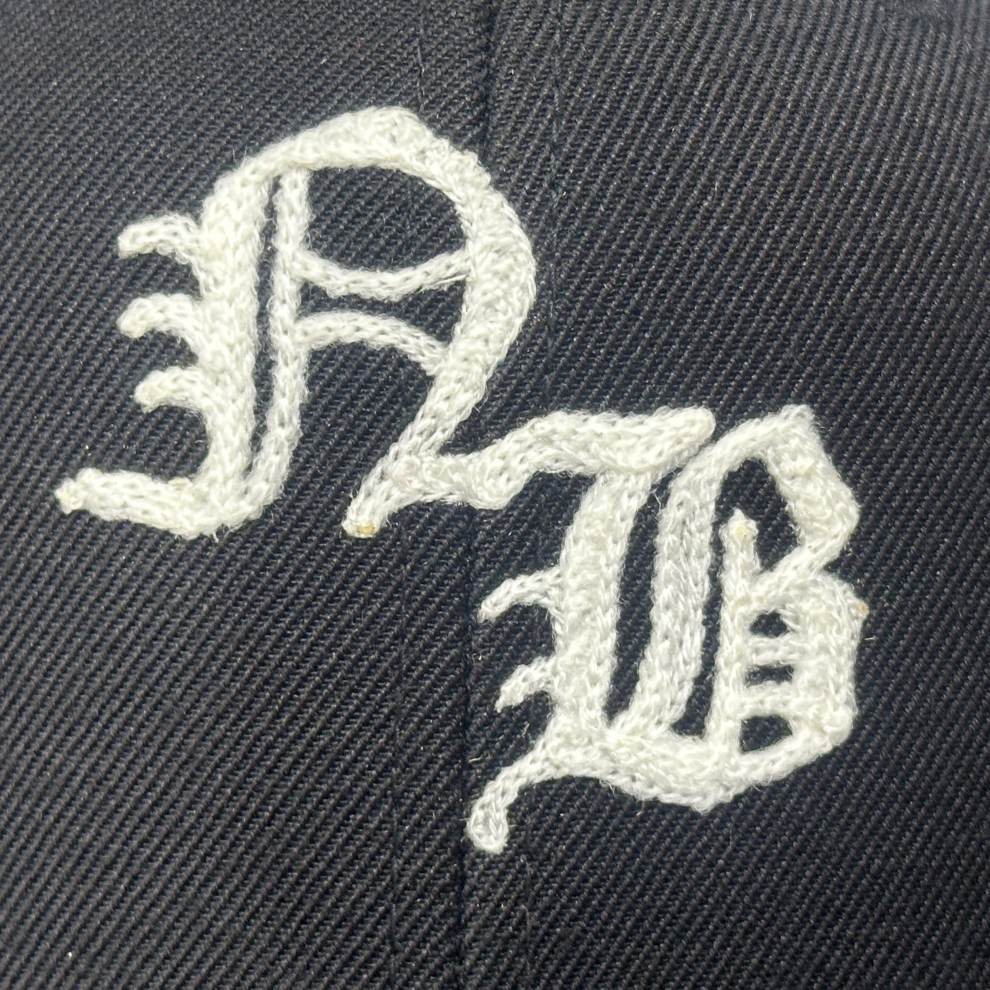 CLUMBER氏に特注でオーダーしオールドイングリッシュの書体でNBとチェーンステッチが施されたキャップです。